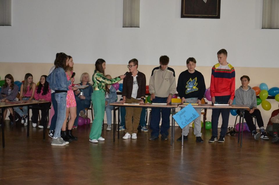 W dniu 20.10.2023r. odbyły się Otrzęsiny klas pierwszych. Wzięło w nich udział siedem klas. Było dużo dobrej zabawy. Uczniowie musieli wykazać się między innymi umiejętnościami wokalnymi i tanecznymi. Po zaciętej rywalizacji, klasyfikacja wyglądała następująco: