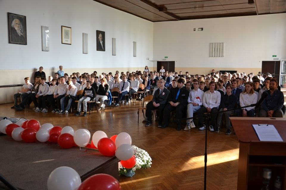 Aby podkreślić znaczenie tego istotnego momentu w historii naszego narodu, uczniowie w strojach galowych z kotylionami w barwach narodowych, odśpiewali Hymn Państwowy, co jeszcze bardziej podkreśliło podniosłość tego wydarzenia.