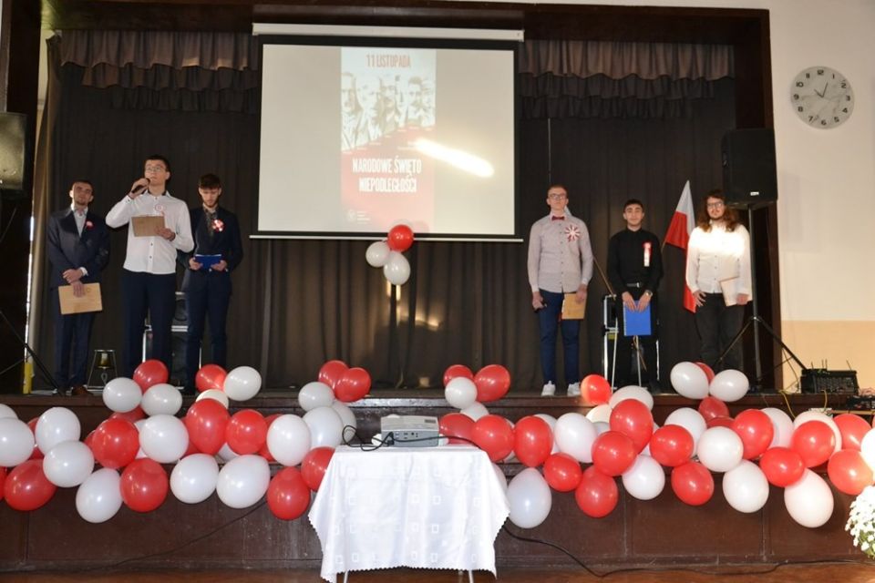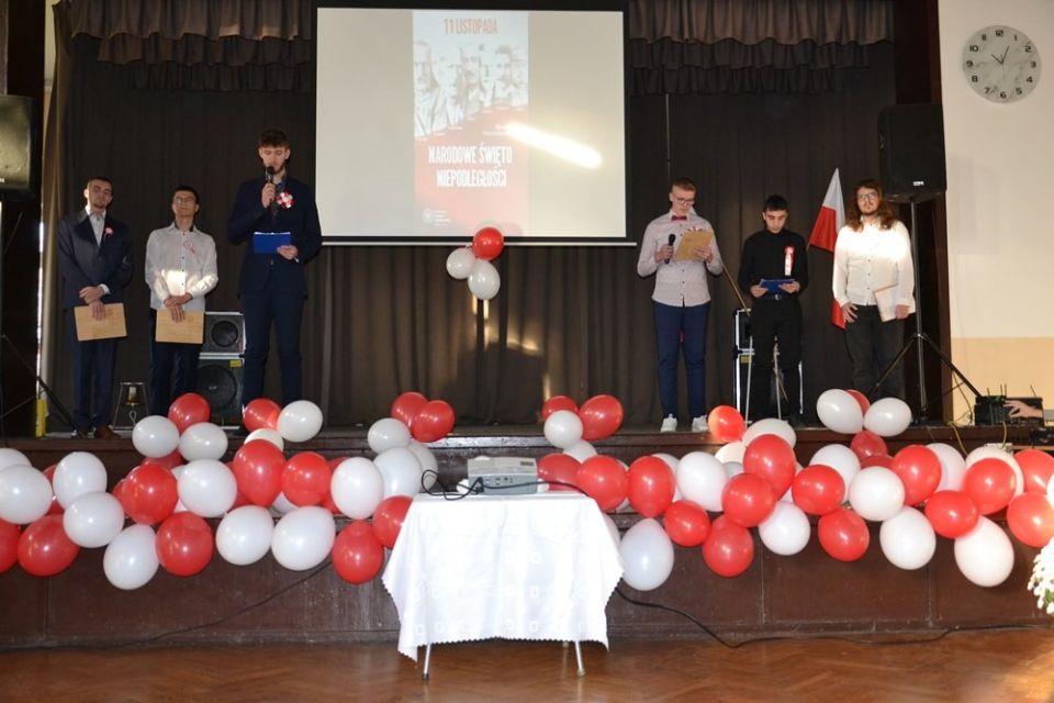 Społeczność uczniowska naszej szkoły uczestniczyła w obchodach 105. rocznicy odzyskania Niepodległości przez Polskę, dzień poprzedzający Narodowe Święto Niepodległości przebiegało pod hasłem: "Dzień dla Niepodległej", uczniowie z poszczególnych klas wysłuchali montażu słowno-muzycznego w wykonaniu uczniów: Tymona Kałużnego, Tytusa Czajkowskiego, Szymona Podbielskiego, Aleksandra Shahbazyana, Borysa Szymańskiego, Kacpra Korzeniaka i Macieja Truszczyńskiego.