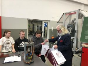 Następnie w rolę Świętego Mikołaja wcielił się Dziekan WIM p. prof. dr hab. inż. Piotr Aleksandrowicz wręczając naszym uczniom upominki #TeamPBŚ oraz karnety na zbliżający się III Akademicki Jarmark Bożonarodzeniowy Politechniki Bydgoskiej. Po zajęciach w laboratorium przyszedł czas na zajęcia w Akademickim Centrum Sportu i tutaj za sprawą #JMRektoraPBŚ uczniowie pod okiem instruktora mieli możliwość odbycia zajęć na ściance wspinaczkowej.