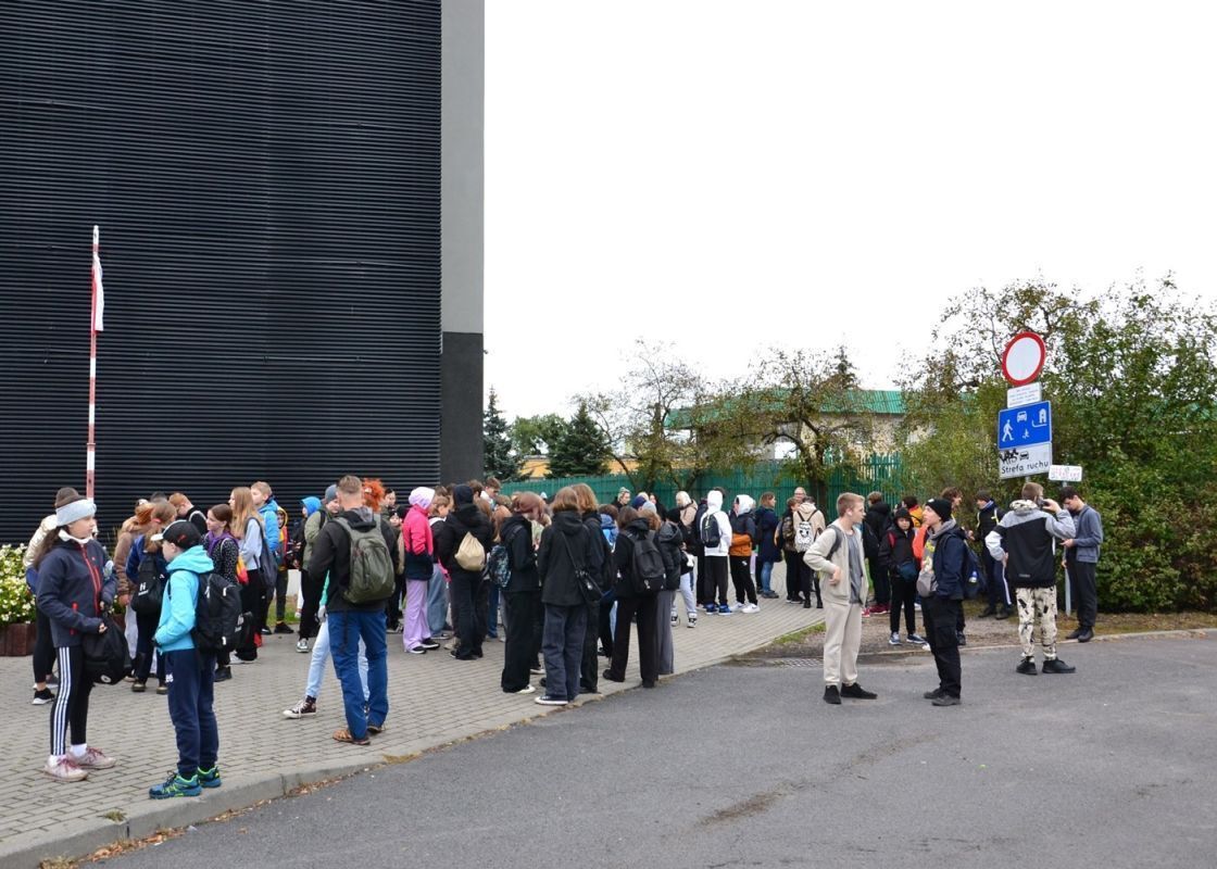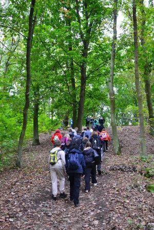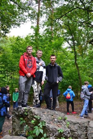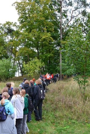 Uczniowie biorący udział w rajdzie pieszym: