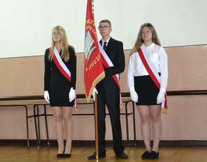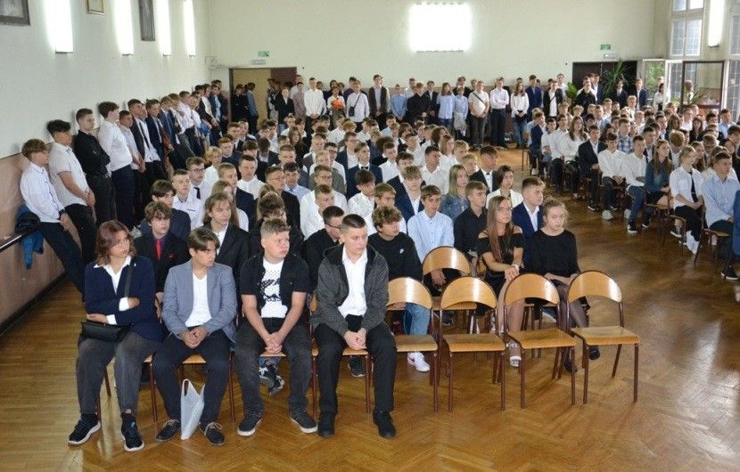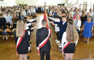 Reprezentanci ośmiu klas pierwszych złożyli uroczyste ślubowanie. Inaugurację uświetniły też przemówienia  Pana Dyrektora, przewodniczącej Rady Rodziców, Pani Elżbiety Schubring, oraz przewodniczącego Samorządu Uczniowskiego, Bartosza Ryl.