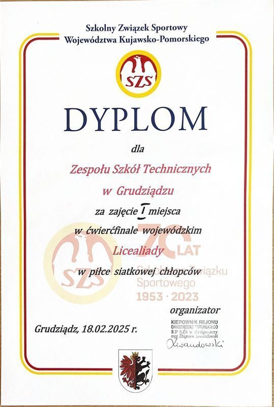 W dniu 18.02.odbył się ćwierćfinał Licealiady piłki siatkowej chłopców w szkole podstawowej nr 21. W turnieju brały udział liceum ogólnokształcące z Chełmna Łasina Wąbrzeźna i ZST z Grudziądza, rozgrywki po losowaniu odbyły się systemem pucharowym.