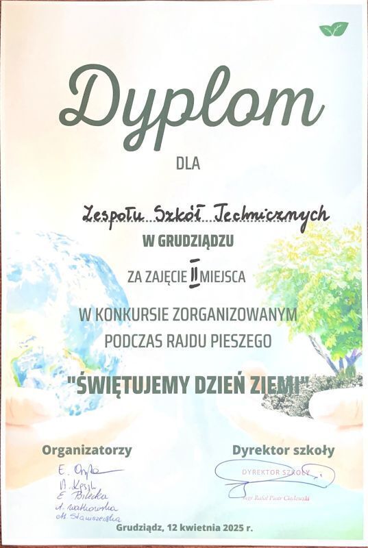 Dnia 12 kwietnia 2025 roku uczniowie naszej szkoły wzięli udział w Rajdzie Pieszym „Świętujemy Dzień Ziemi” zorganizowanym przez Oddział PTTK im. ks. ppłk. dr. Władysława Łęgi w Grudziądzu oraz Szkołę Podstawową nr 16.