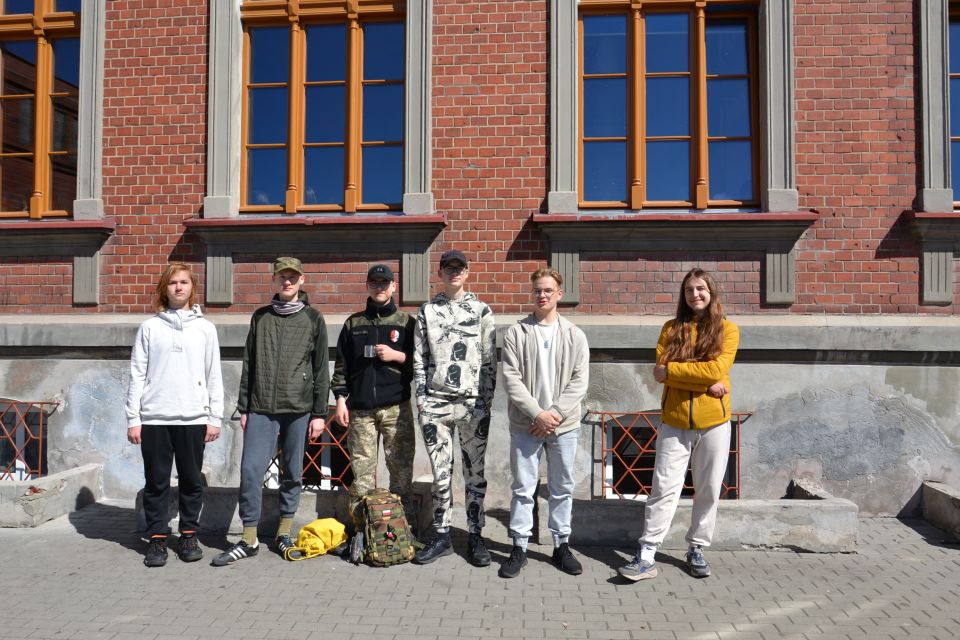 Uczniowie biorący udział w rajdzie pieszym: