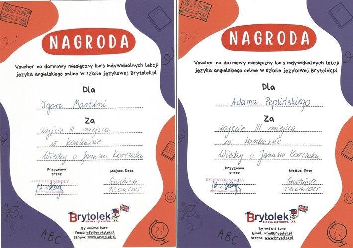 Igor Martini z klasy I TInf, i Adam Pepliński z klasy I TMe zajęli III miejsce.