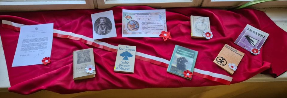 W tym roku czytaliśmy dzieła Jana Kochanowskiego. Informacje o Mistrzu z Czarnolasu znalazły się również na tablicy i wystawie w bibliotece.