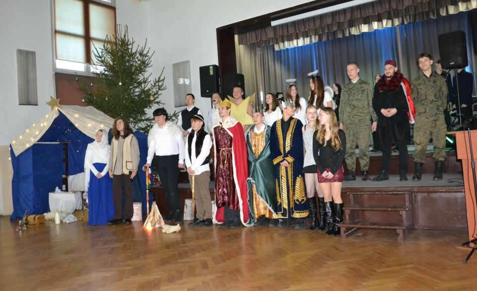 W naszej szkole odbyło się wyjątkowe wydarzenie artystyczne – koncert połączony z Jasełkami. Uczniowie zaprezentowali bożonarodzeniowe przedstawienie, które wprowadziło wszystkich w świąteczny nastrój. Podczas koncertu zaśpiewano sześć kolęd, pięknie wykonanych przez szkolnych artystów. Całość spotkała się z ciepłym przyjęciem publiczności. Na zakończenie Dyrektor szkoły złożył całej społeczności uczniowskiej serdeczne życzenia świąteczne i noworoczne.