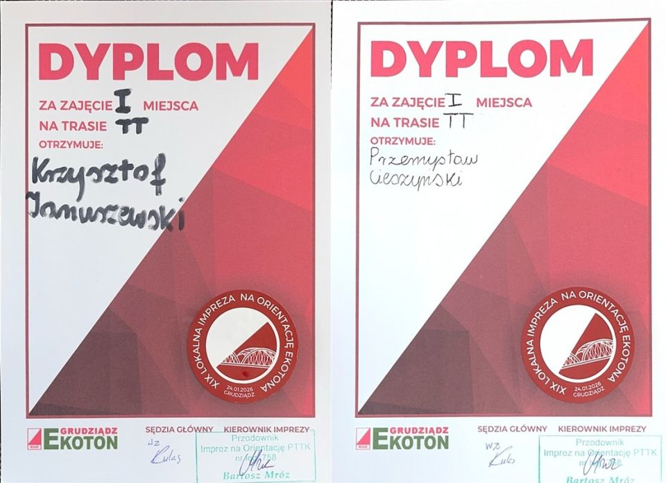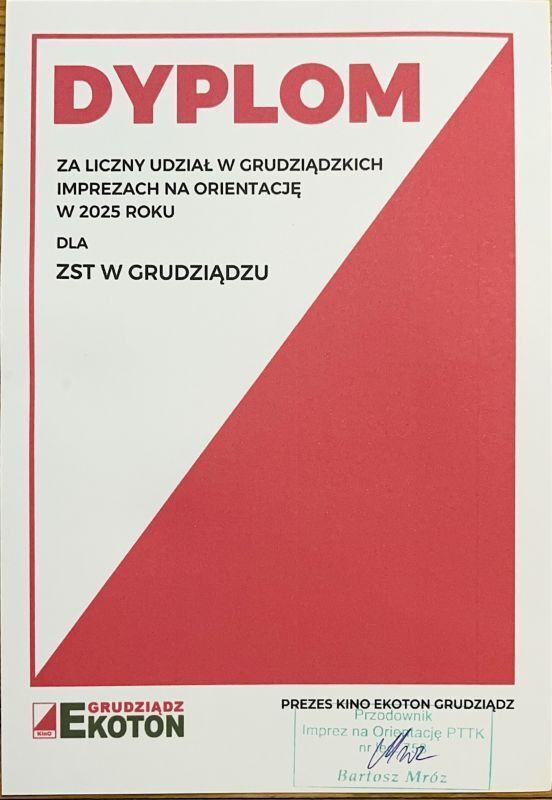 Zespół Szkół Technicznych otrzymał dyplom za liczny udział w Grudziądzkich Imprezach na Orientację w 2025 roku.