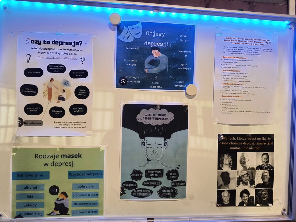 - przygotowanie gabloty tematycznej na Ogólnopolski Dzień Walki z Depresją jako formę psychoedukacji,