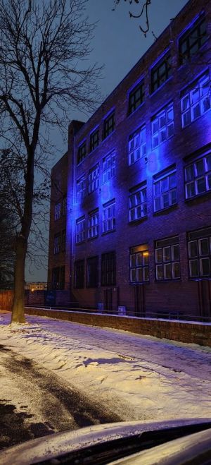 Zwieńczeniem dnia 23 lutego 2026r. było rozświetlenie budynku szkoły niebieską iluminacją, która jest kolorem wsparcia i nadziei.