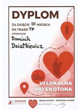 Dominik Dziatkiewicz z klasy III TM w kategorii TP zajął III miejsce.