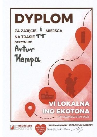 Artur Kempa z klasy II TAM w kategorii TT zajął I miejsce.