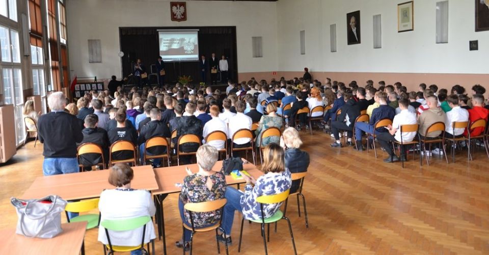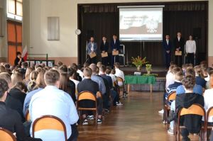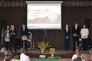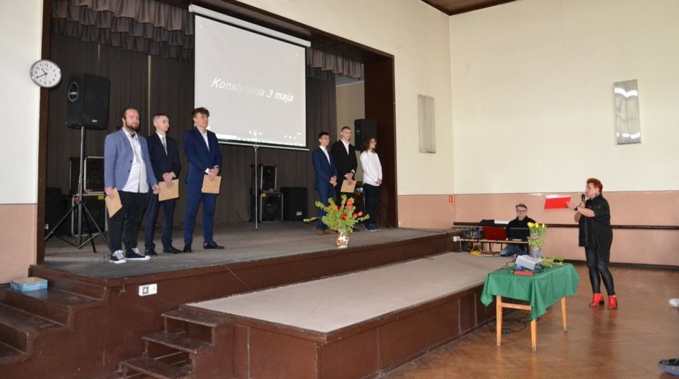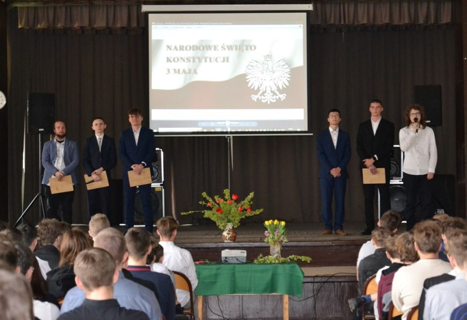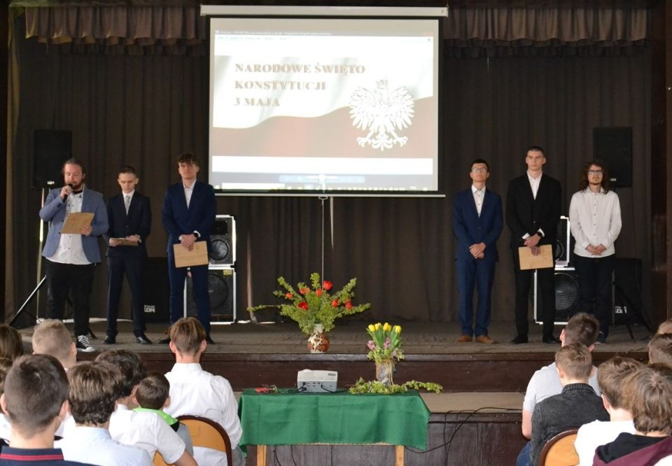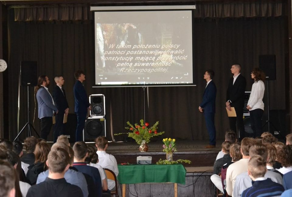 Uczniowie z klasy 4aT5: Maciej Kruczynski i Szymon Podbielski oraz z klasy 3TM: Mateusz Jeliński, Kamil Kordek, Kacper Kozłowski oraz Maciej Truszczyński wystąpili z krótkim programem artystycznym, który odnosił się do Narodowego święta Konstytucji."
